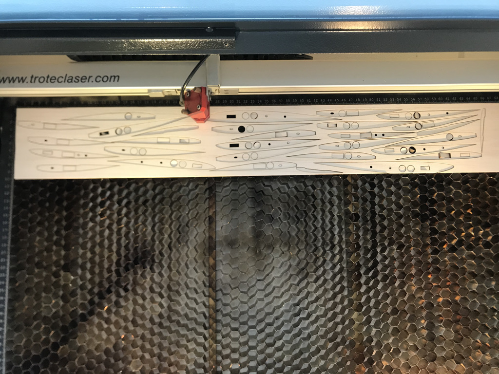 With the Fablab's laser cut I could cut the ribs precisely. I chose to have each rib cut in two different wood: one in balsa and the other in Tilleul. I then glued them together before gluing them in place i the wings and fuselage